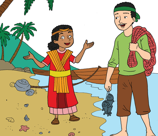 Salah satu tokoh dalam dongeng di atas ialah Si Nelayan Muda yang tentu saja sering berinteraksi dengan laut untuk mencari ikan. Kamu tentu ingat bahwa para nelayan memanfaatkan angin bahari dan angin darat untuk pergi melaut.
